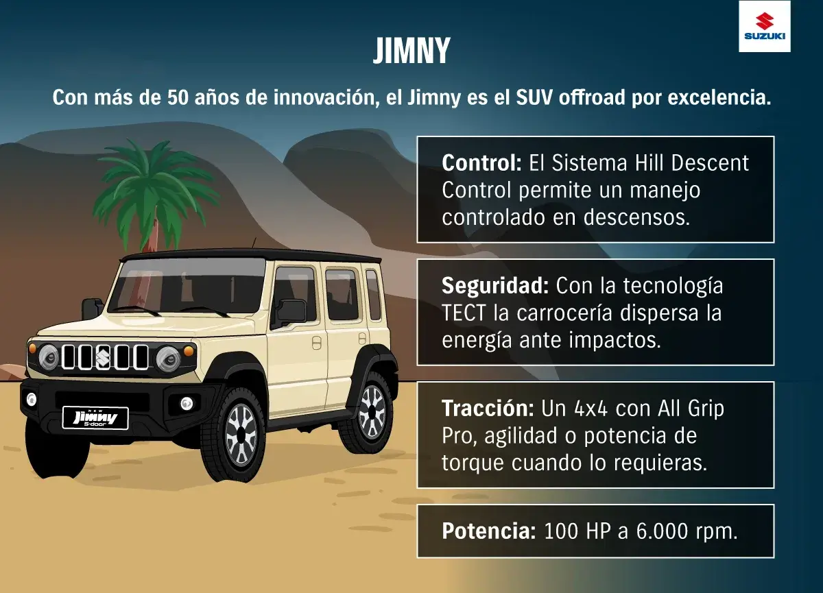 Para disfrutar estos beneficios y aprovechar de conocer nuevos rincones de Chile, el Jimny y el Grand Vitara Hybrid son alternativas ideales para que cada viaje sea inolvidable de principio a fin. Este vehículo ofrece una combinación perfecta de durabilidad y versatilidad, ideal para cualquier tipo de aventura. Ya sea que estés atravesando terrenos difíciles o conduciendo por la ciudad, el Jimny se adapta a todas tus necesidades.