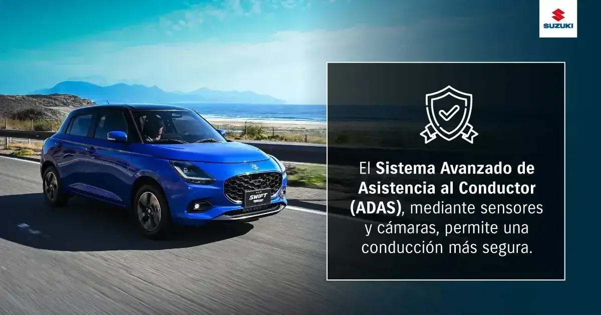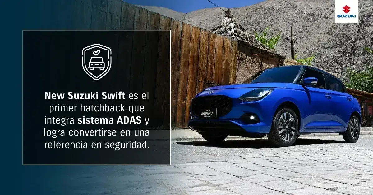 En su sexta generación, además de su espÃritu juvenil que permanece inalterable, Swift Hybrid logra resaltar mediante destacados avances que lo posicionan entre los mejores hatchback del mercado. La presencia de la tecnologÃa ADAS es una de estas innovaciones, que lo distinguen en materia de seguridad.